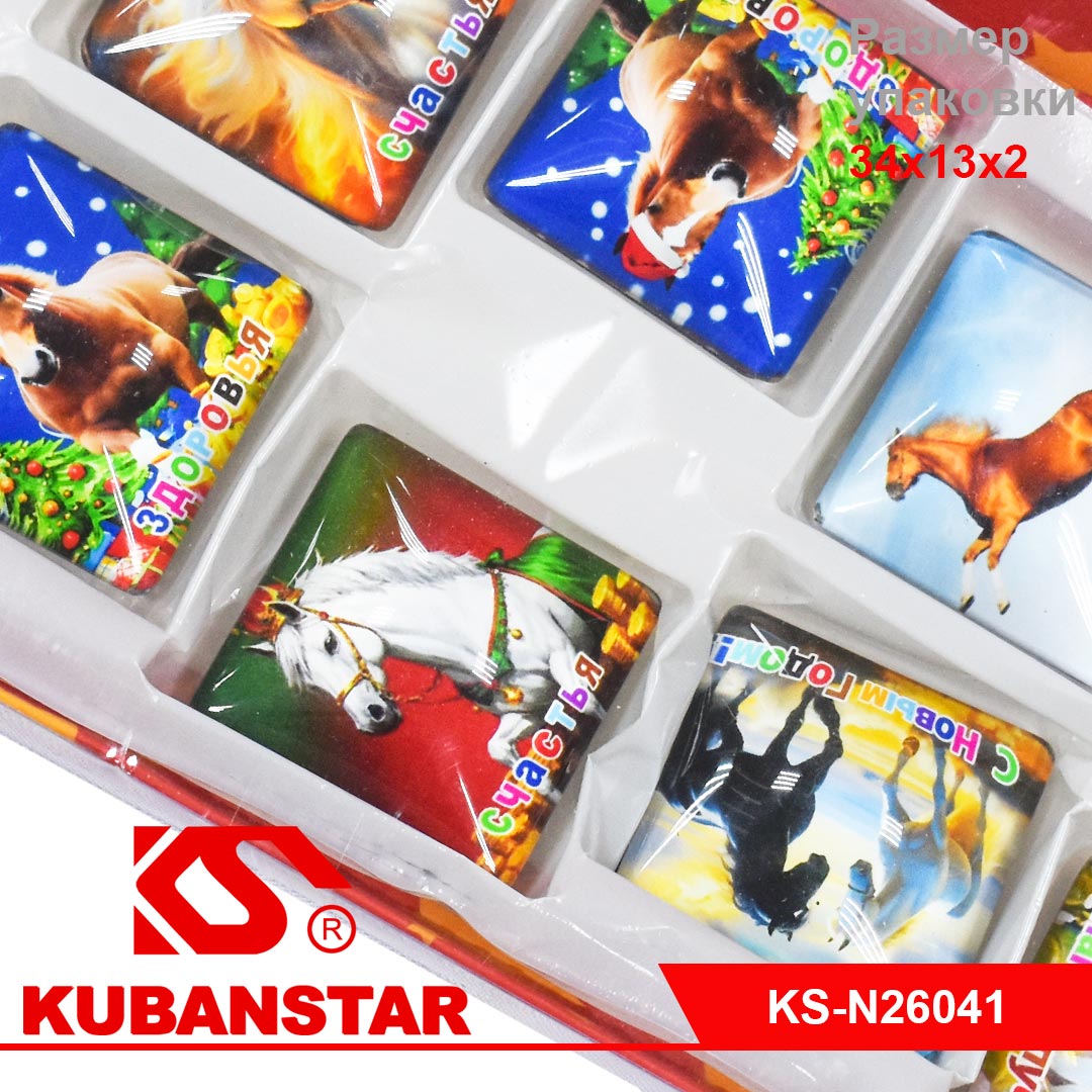 Магнит квадратной формы со стеклянной фронтальной поверхностью с изображением символа 2026 года - лошадью.