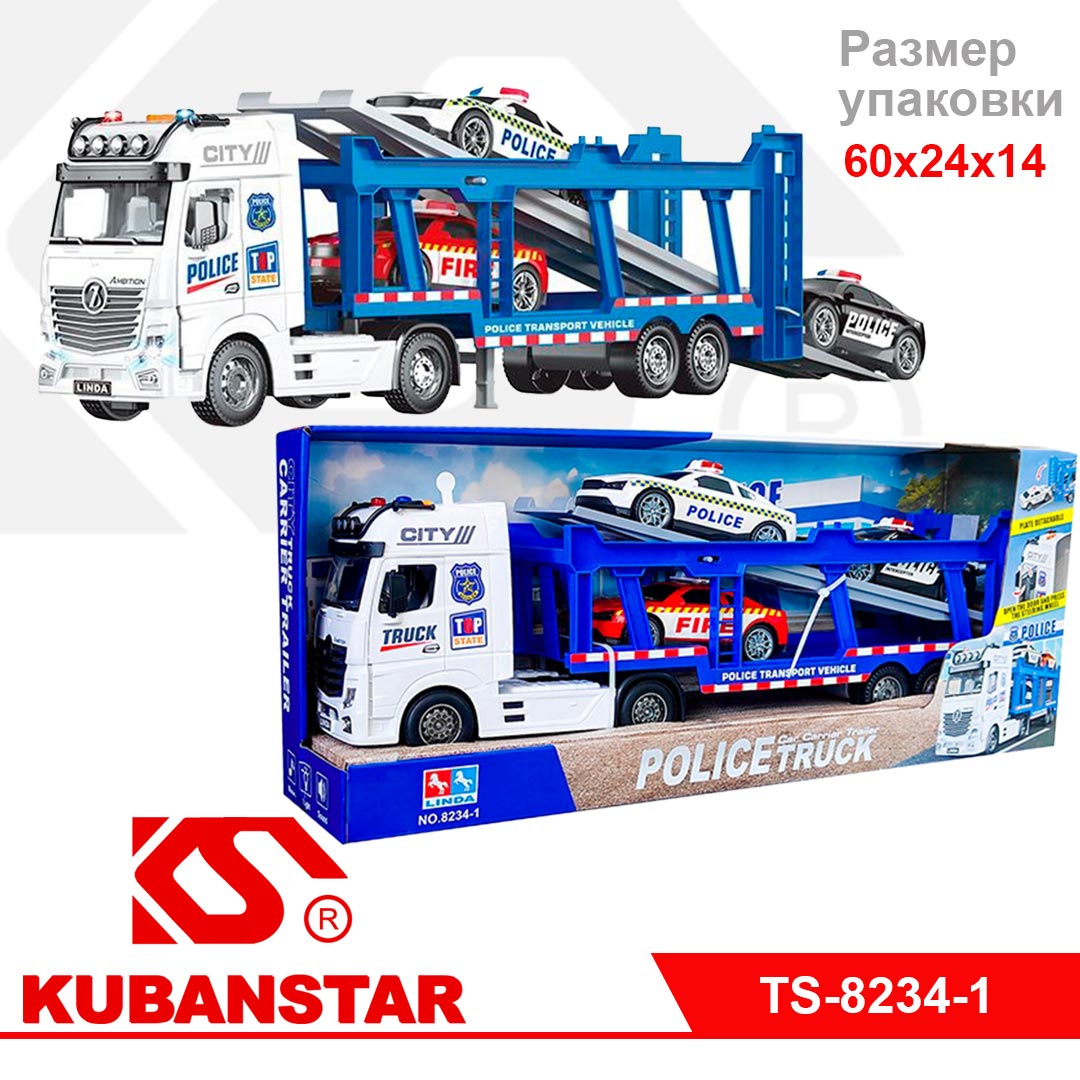 Игровой набор, состоящий из трейлера с платформой-полуприцепом, на которую погружены легковые автомобили. Это целый комплекс, который подарит море впечатлений любому мальчишке! К тому же игрушки из комплекта обладают звуковыми и световыми эффектами (для работы спецэффектов необходимы батарейки, не входящие в комплект). С такой техникой можно устраивать самые разнообразные интереснейшие игры!