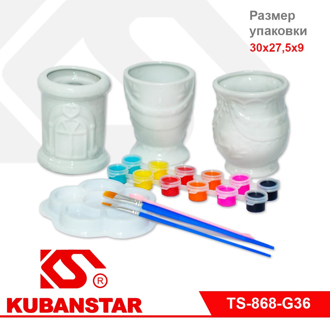 Воспользовавшись кисточкой и специальными красками, имеющимися в наборе, ребенок сможет раскрасить три красивые белые вазы, сделав их яркими и интересными. Увлекательный процесс росписи надолго завладеет вниманием детей.