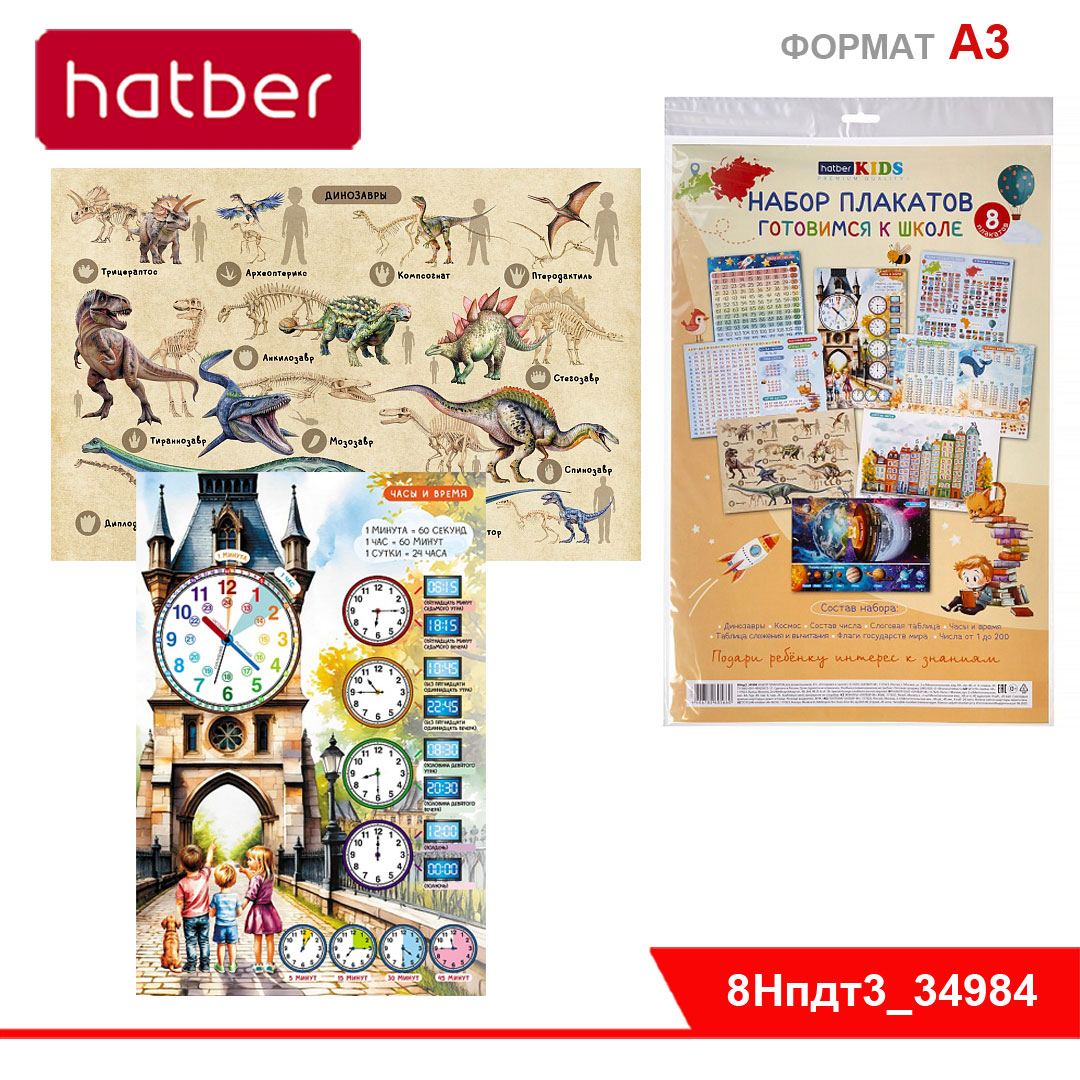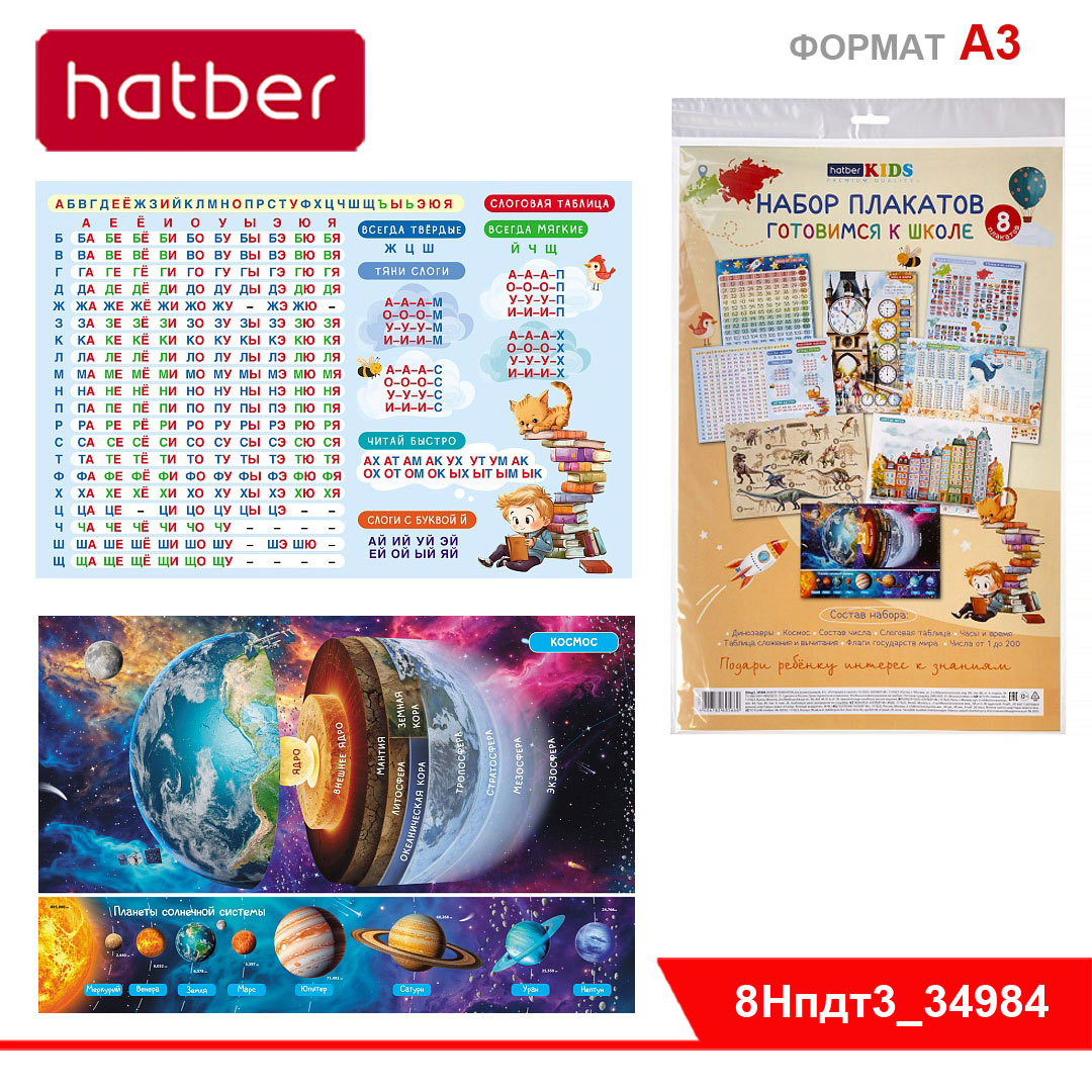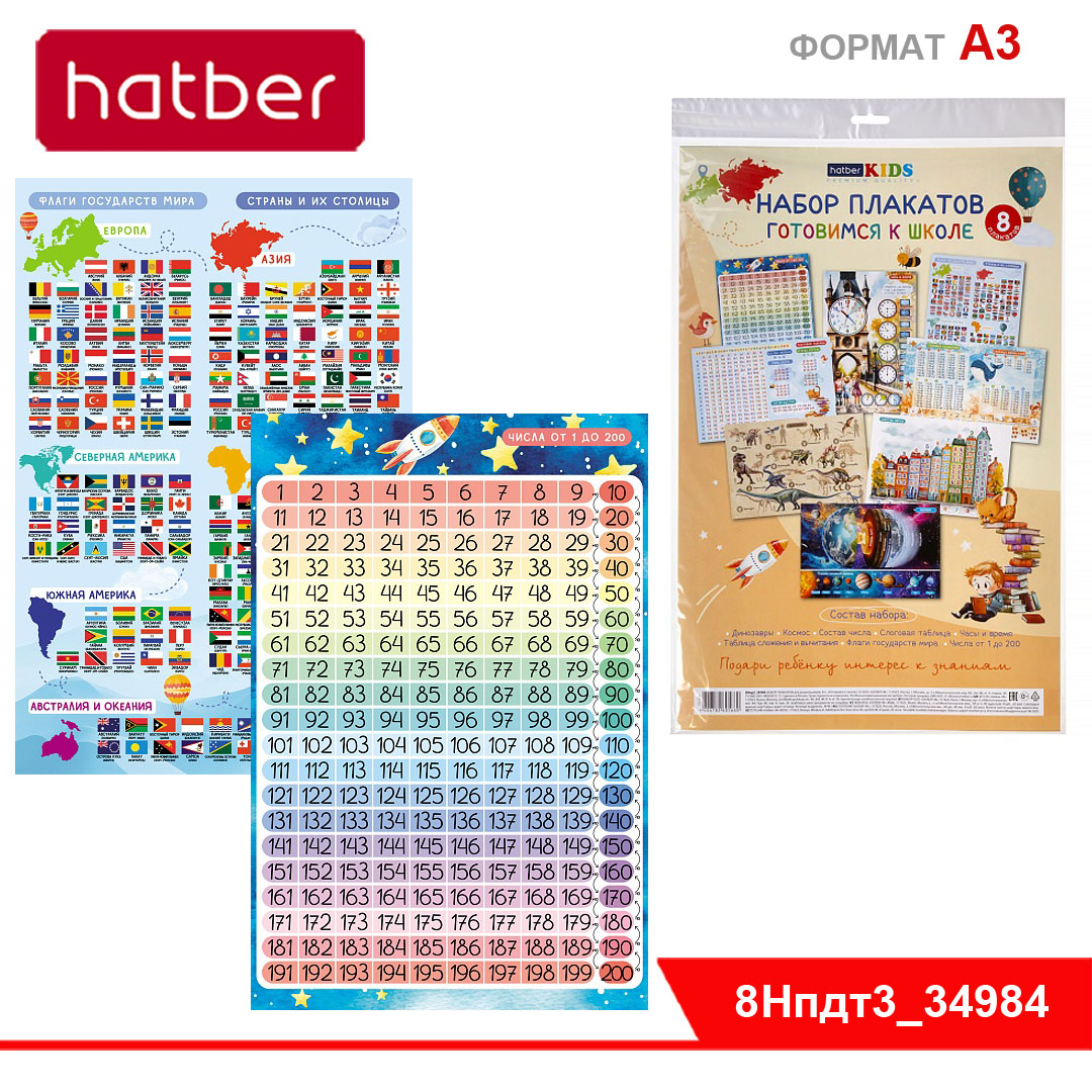Набор плакатов для Дошкольников 8л А3ф Картон тиснение-Готовимся к школе- в пакете