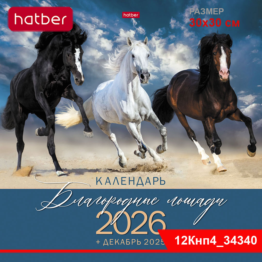 Календарь настенный перекидной 30х30см на 2026г бум. Мелованная на скобе-Благородные лошади-