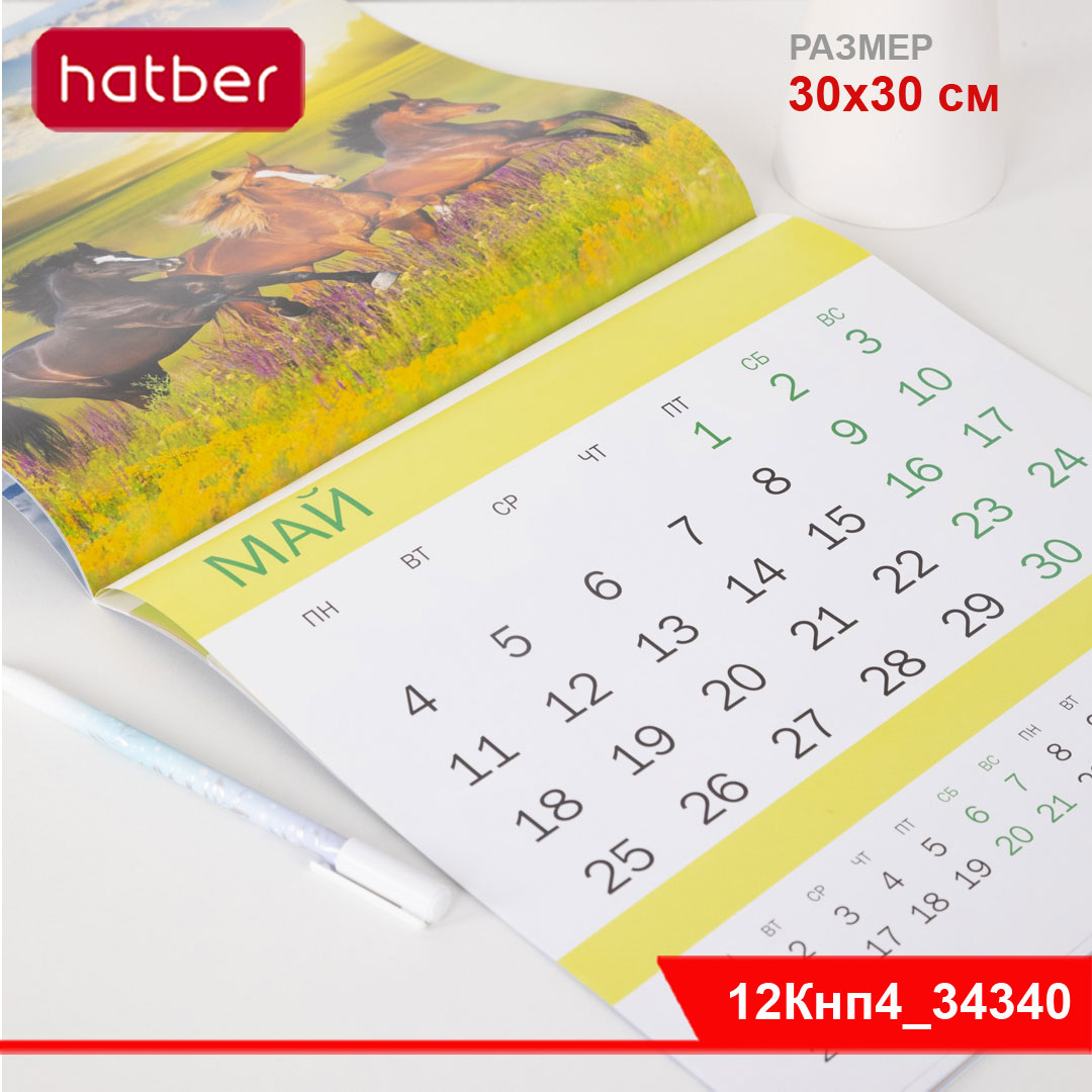 Перекидной настенный календарь на 2026 год с изображениями символов года - лошадей. Скрепление на скобе, размеры: 300х300 мм.