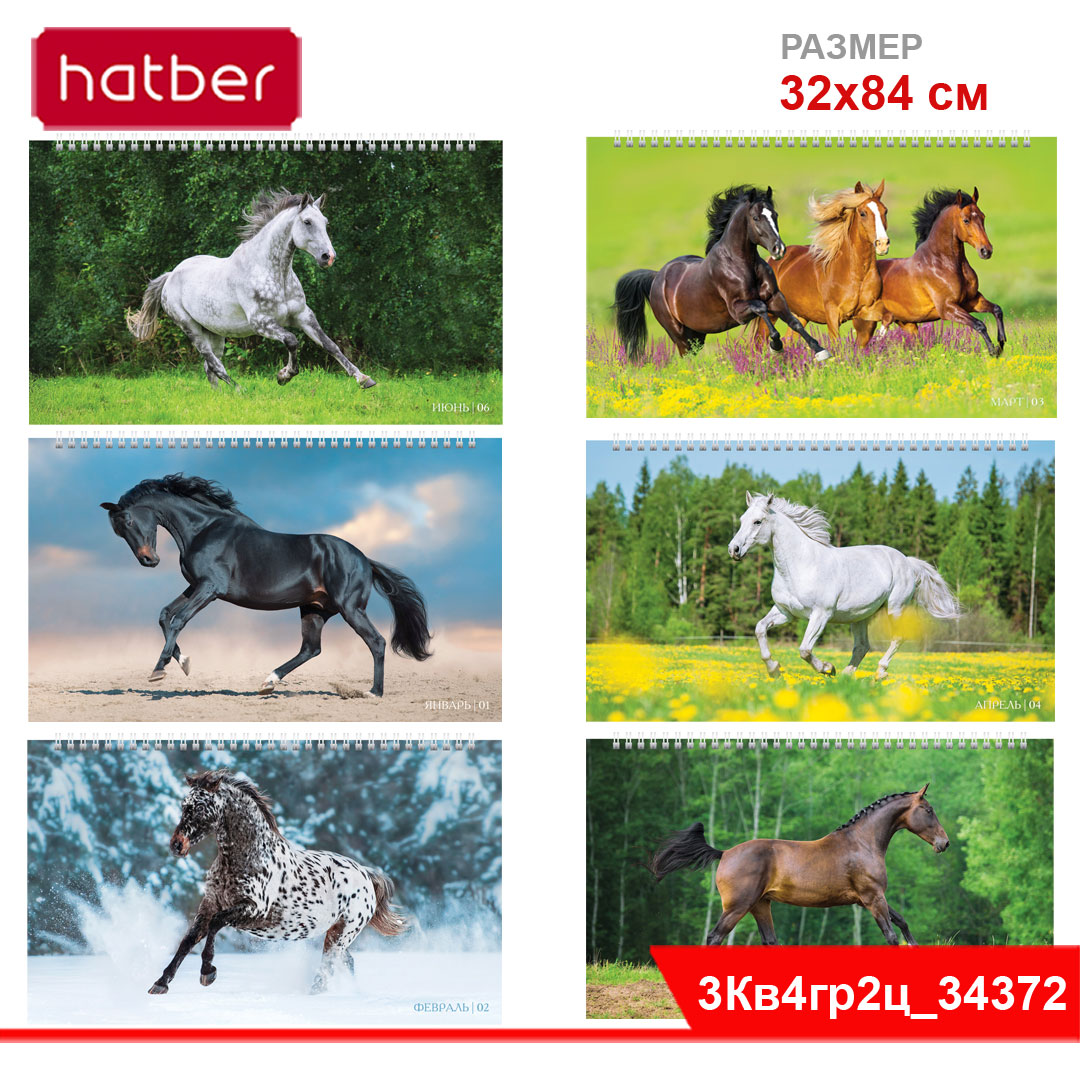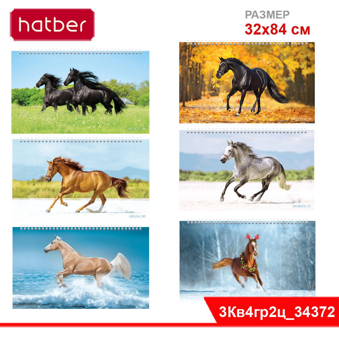 Календарь квартальный 3-х блоч. на 4-х гребнях 320х840мм на 2026г-Год Лошади- в инд.упак.