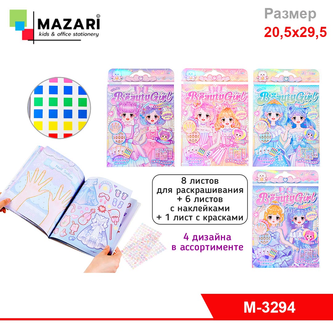Красочный альбом для творчества, состоящий из 8 листов для раскрашивания, 6 листов с наклейками и 1 листа с красками размером 20,5x29,5 см. Тип изделия: альбом для творчества [Подробнее...]