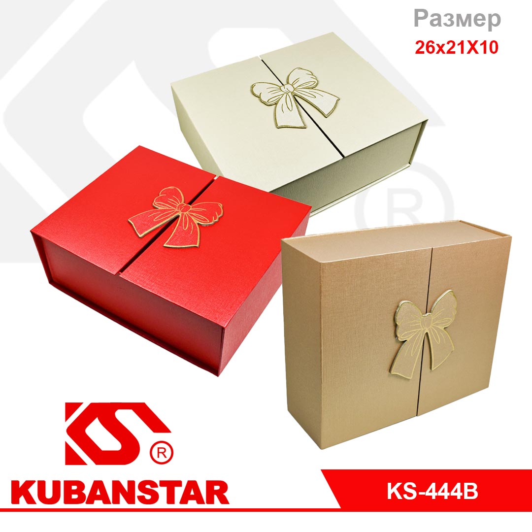 Коробки подарочные из твердого картона, покрытые бумагой с гладкой однотонной фактурой. Крышка коробки украшена картонным бантом. Боковые стенки крепятся на липучках. Реализуются изделия в разобранном виде. Несколько цветов в ассортименте. [Подробнее...]