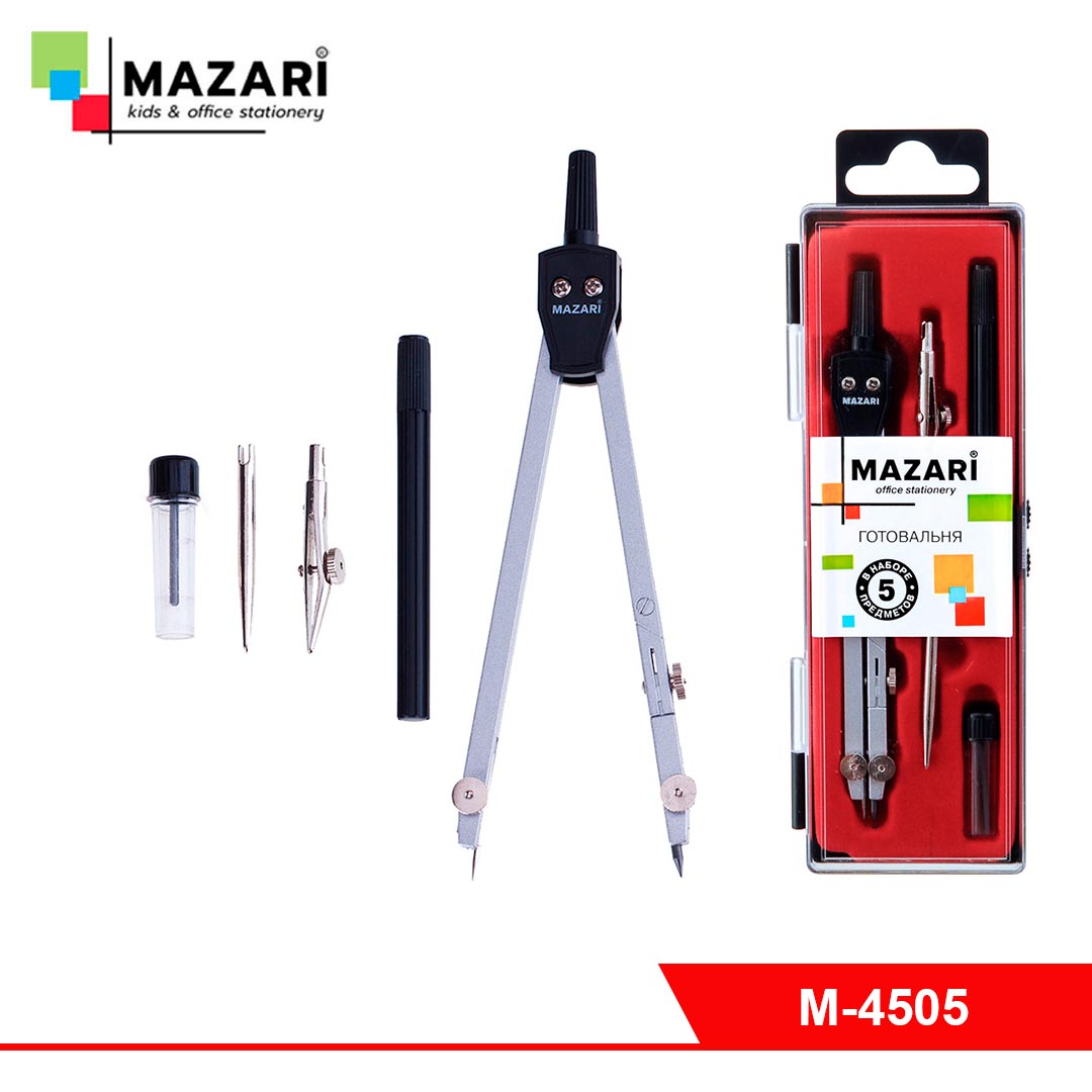 Готовальня, состоящая из 5 предметов (циркуль 140 мм, насадка на рейсфедер, держатель для рейсфедера) Тип изделия: готовальня Материал: металл, пластик Индивидуальная упаковка: пластиковый футляр Бренд: MAZARI Артикул: [Подробнее...]