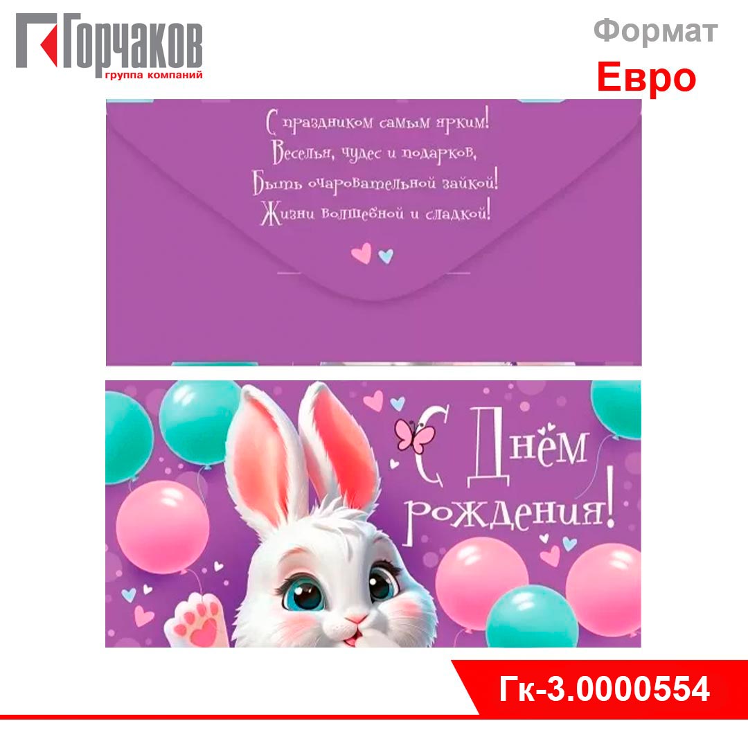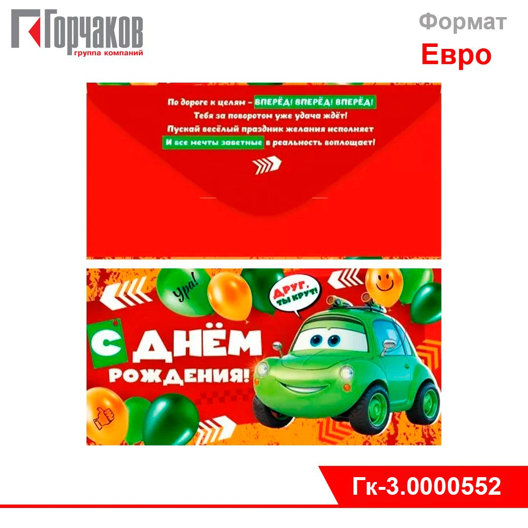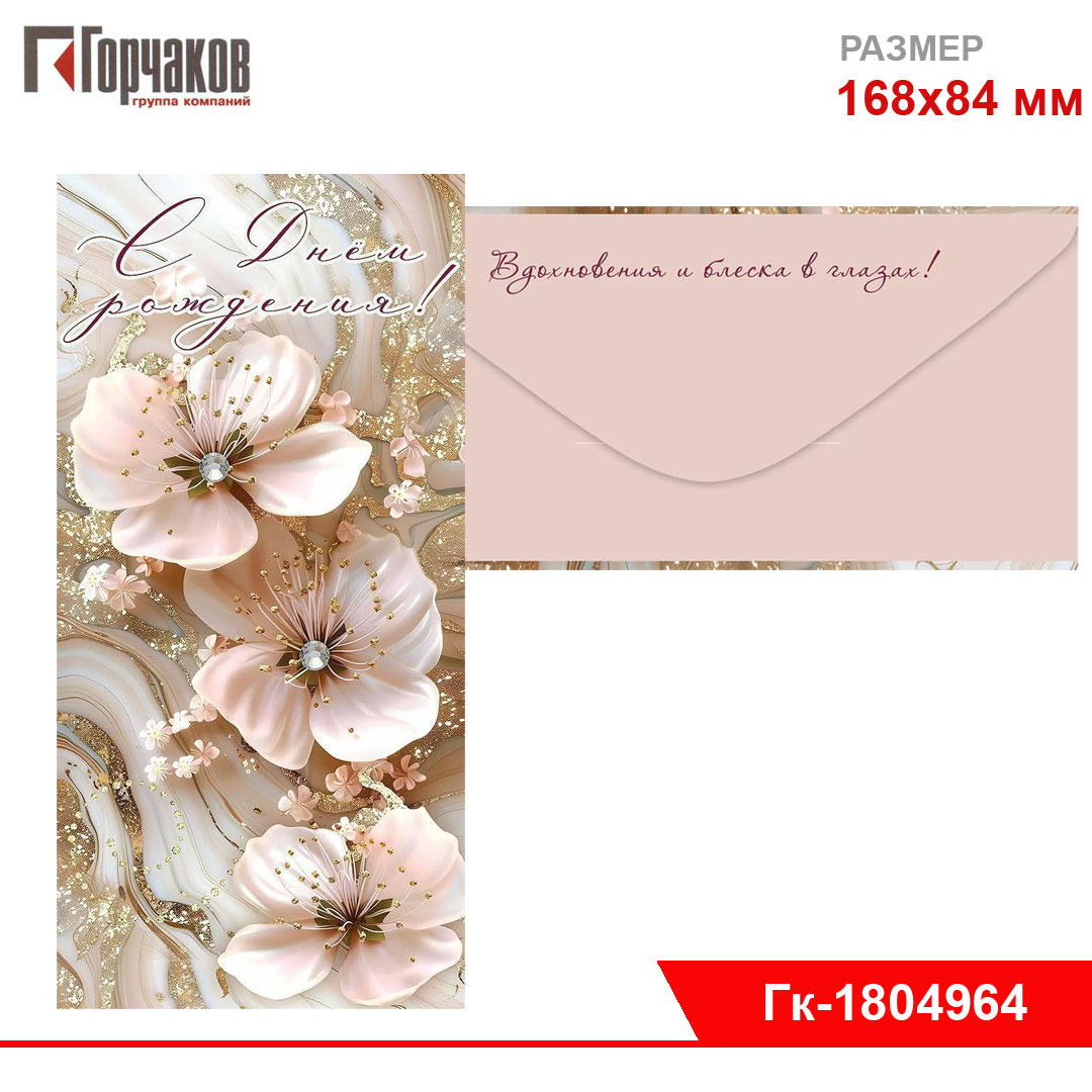 Конверт для денег с поздравлением ко дню рождения. Изображение покрыто глянцевым УФ-лаком. Материал — плотный картон высокого качества. Размеры — 168х84 мм. Количество экземпляров в одной упаковке — 10 штук. [Подробнее...]