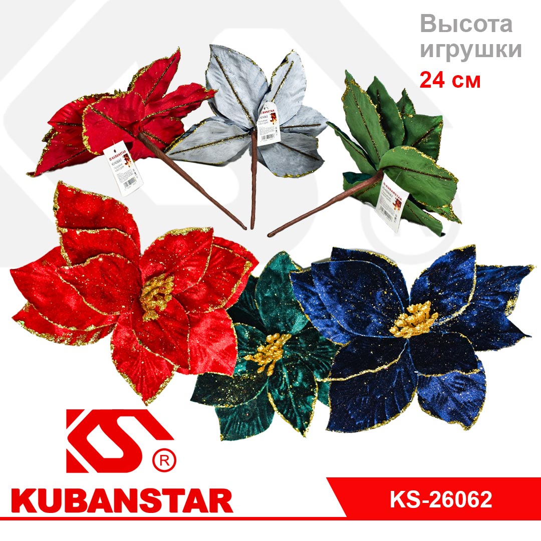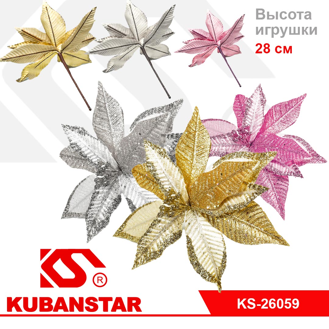 Яркий, с нарядными блестками, искусственный цветок станет прекрасным дополнением к новогодней елочке, украсит рождественский праздник. Диаметр цветка - 28 см. Три цвета в ассортименте. Тип изделия: Новогоднее, рождественское украшение Высота: [Подробнее...]
