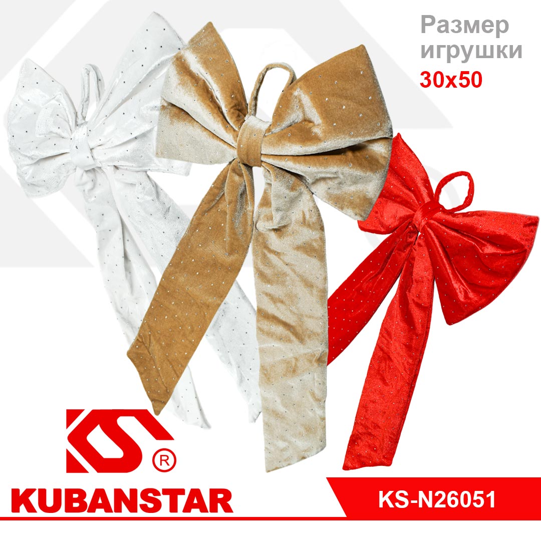 Елочное украшение для дома "Бантик со стразами" 30х50 см., 5 цв.