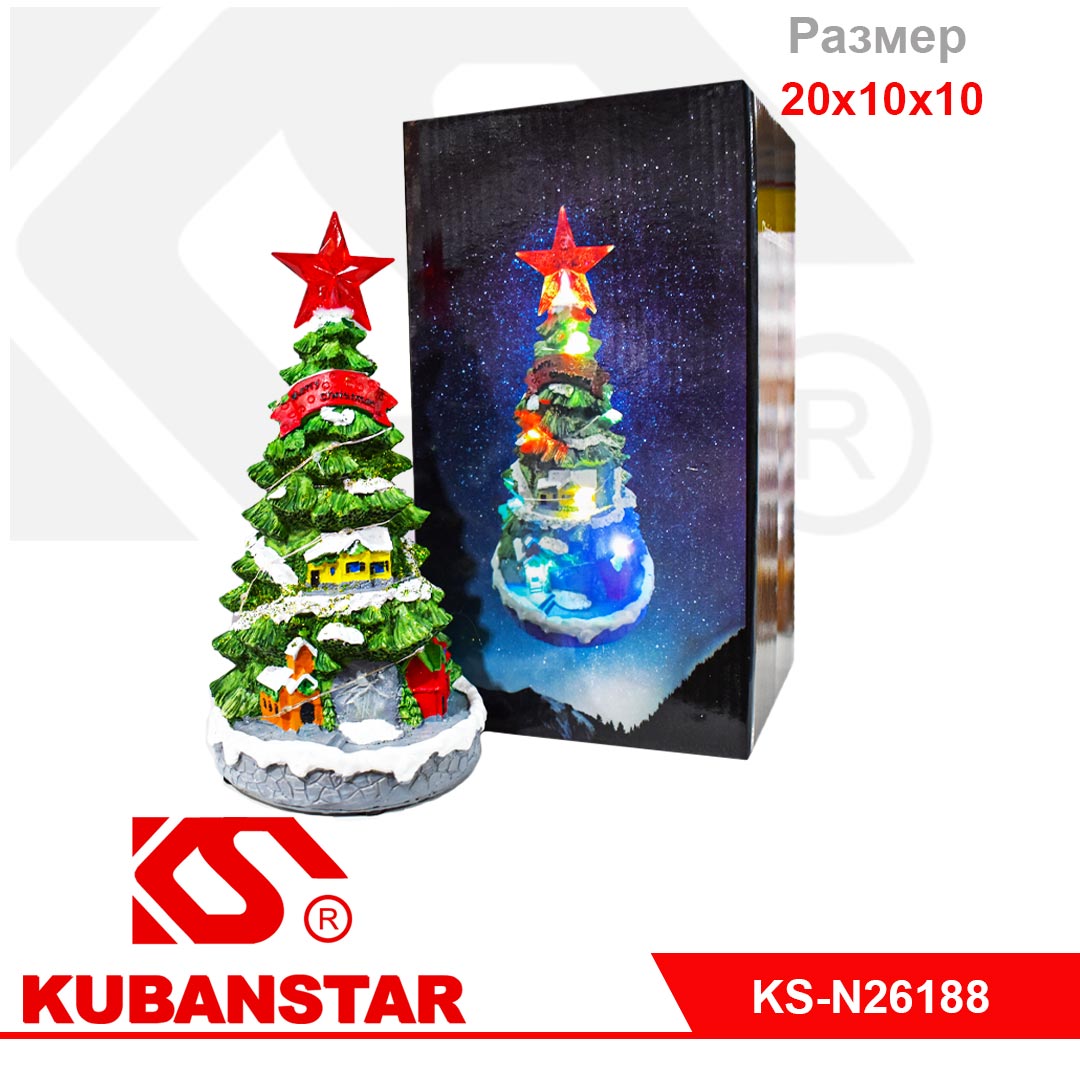 Чудесный новогодний сувенир - украшенная пятиконечной красной звездой и игрушками заснеженная елочка на круглой подставке с домиками и подарками. Такая елочка, переливаясь разноцветными огнями в сопровождении приятной мелодии, обязательно создаст у вас и [Подробнее...]