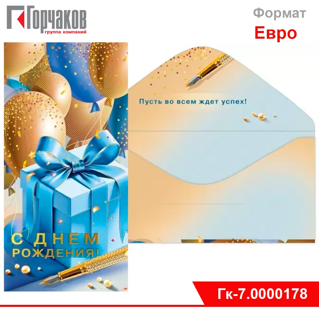 Конверт для денег с поздравлением ко дню рождения. Изображение покрыто золотой фольгой, глянцевым ВД-лаком. Материал - плотный картон высокого качества. Размеры - 168х84 мм. Количество экземпляров в одной упаковке - 10 штук. [Подробнее...]